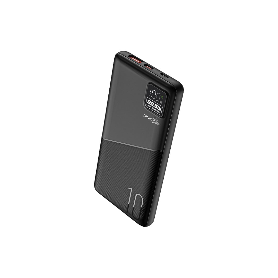 - باور بانك بورودو بلو بسعة 10,000 مللي امبير بشحن سريع بمنفذي يو اس بي اي ويو اس بي سي | Porodo Blue 10000mAh Quick Charge Power Bank USB-A and USB-C Output