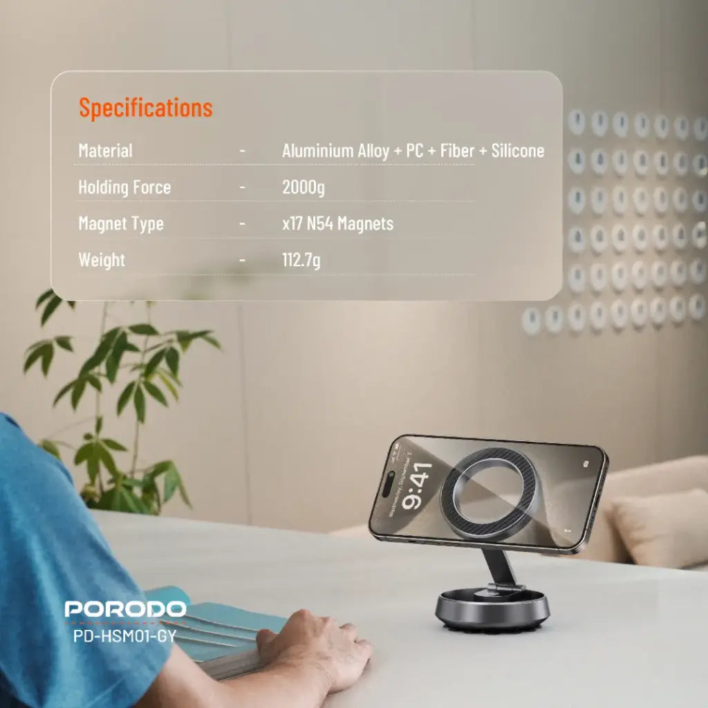 - حامل الهاتف بورودو HS01 DUO يوفر لك تجربة تثبيت آمنة ومرنة لهاتفك أينما كنت. يتميز بتقنية MagSafe مع قاعدة شفط قوية تمنحك حرية اختيار التثبيت سواء على المكتب، السيارة، أو أي سطح أملس. تصميمه الذكي القابل للطي يجعله مدمجًا وسهل الحمل، مما يجعله مثاليًا للاستخدام أثناء السفر.