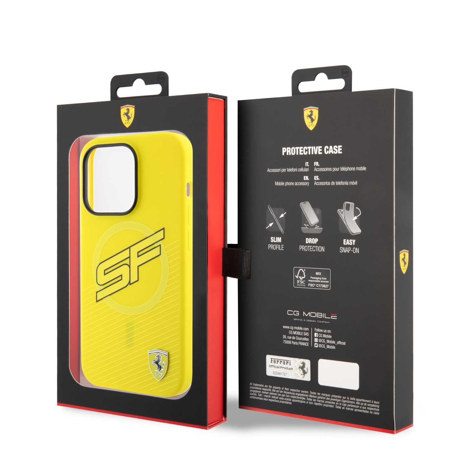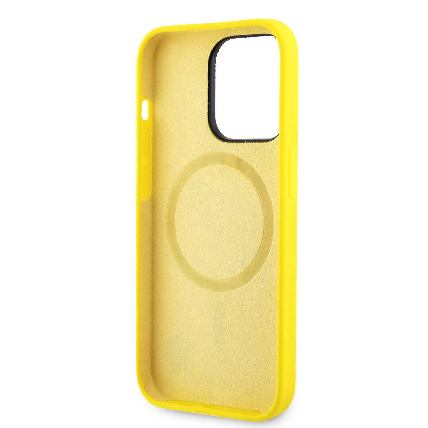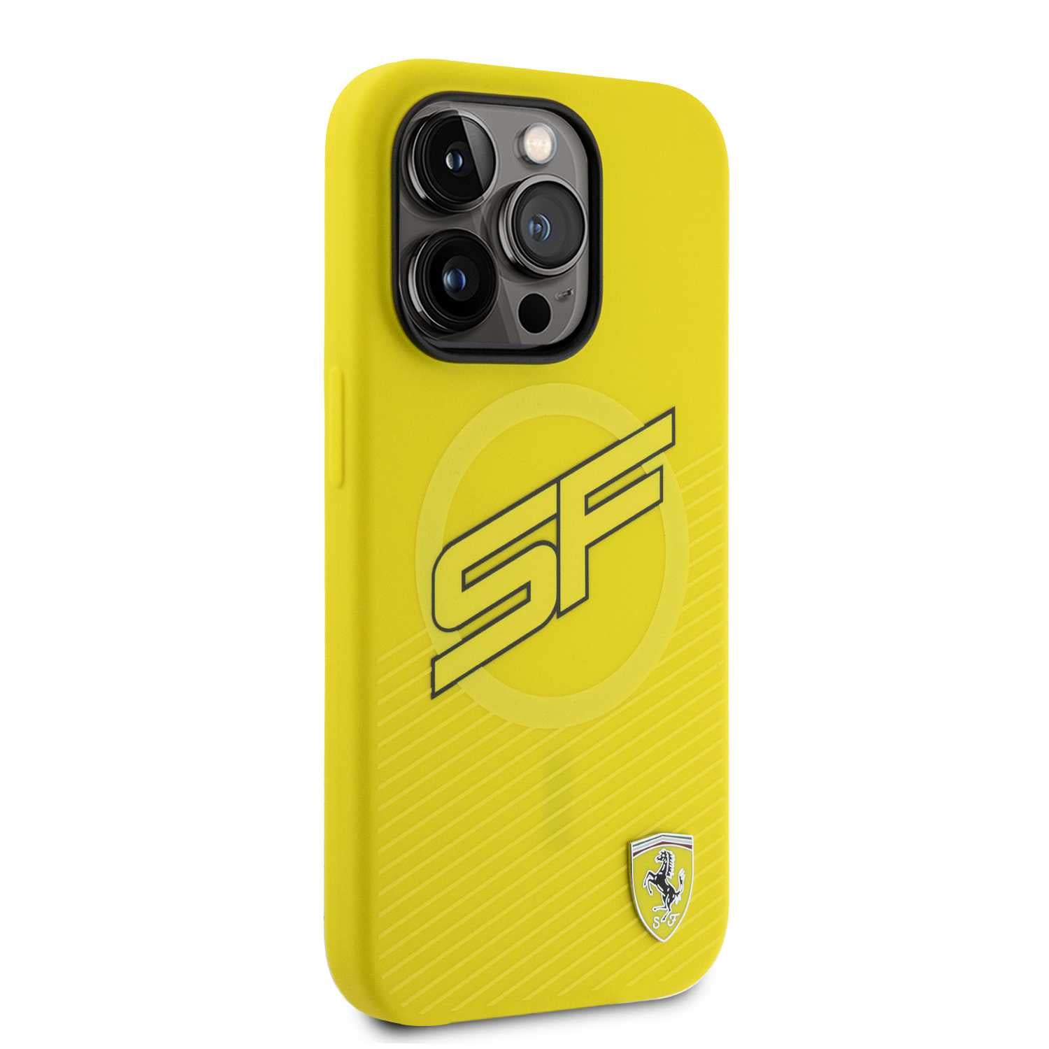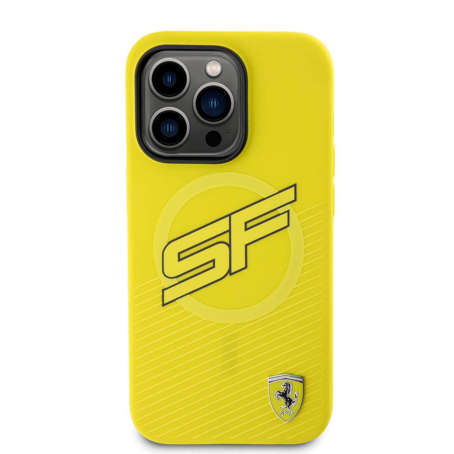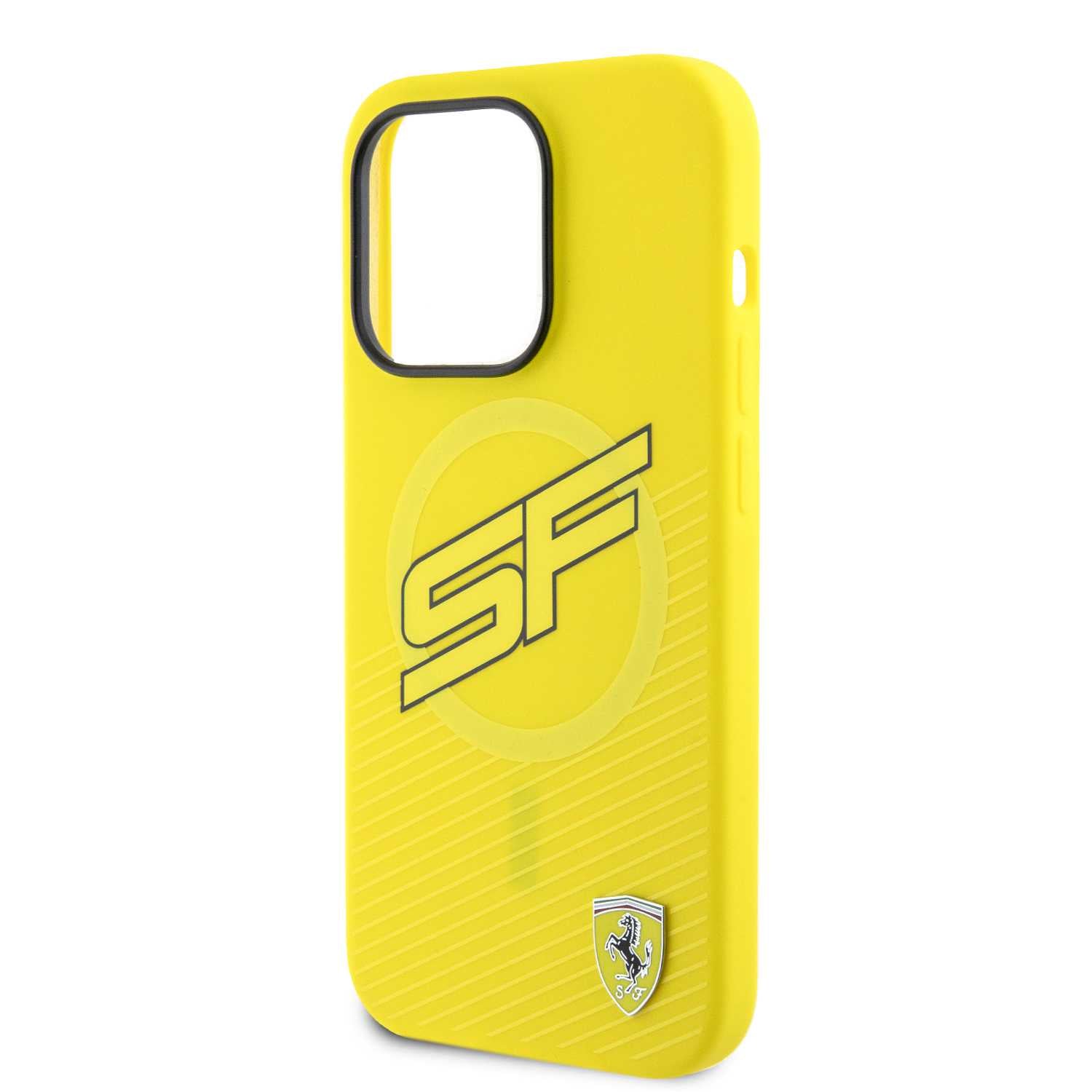 حافظ على هاتفك بأناقة مع غطاء فيراري السيليكون الأصلي المصمم خصيصًا لهاتف iPhone 15 Pro Max، باللون الأصفر الحيوي وتفاصيل شعار Scuderia Ferrari المميزة.
