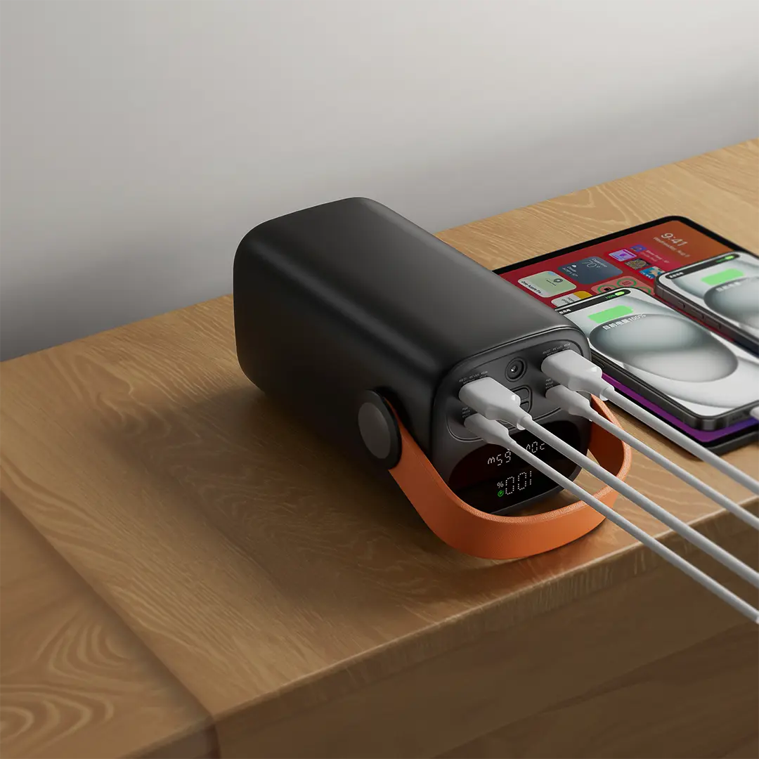 يدعم الباور بانك سرعات شحن متعددة عبر مدخل ومخرج Type-C تتراوح بين 5V/3A إلى 20V/5A لتلبية جميع احتياجاتك. سواء كان جهازك لابتوب أو هاتفًا، يقدّم شحنًا سريعًا بقوة 30W باستخدام تقنية QC 3.0. كما يحتوي على شاشة رقمية لمراقبة الطاقة بسهولة، ومقبض محمول لإضافة الراحة أثناء الاستخدام.