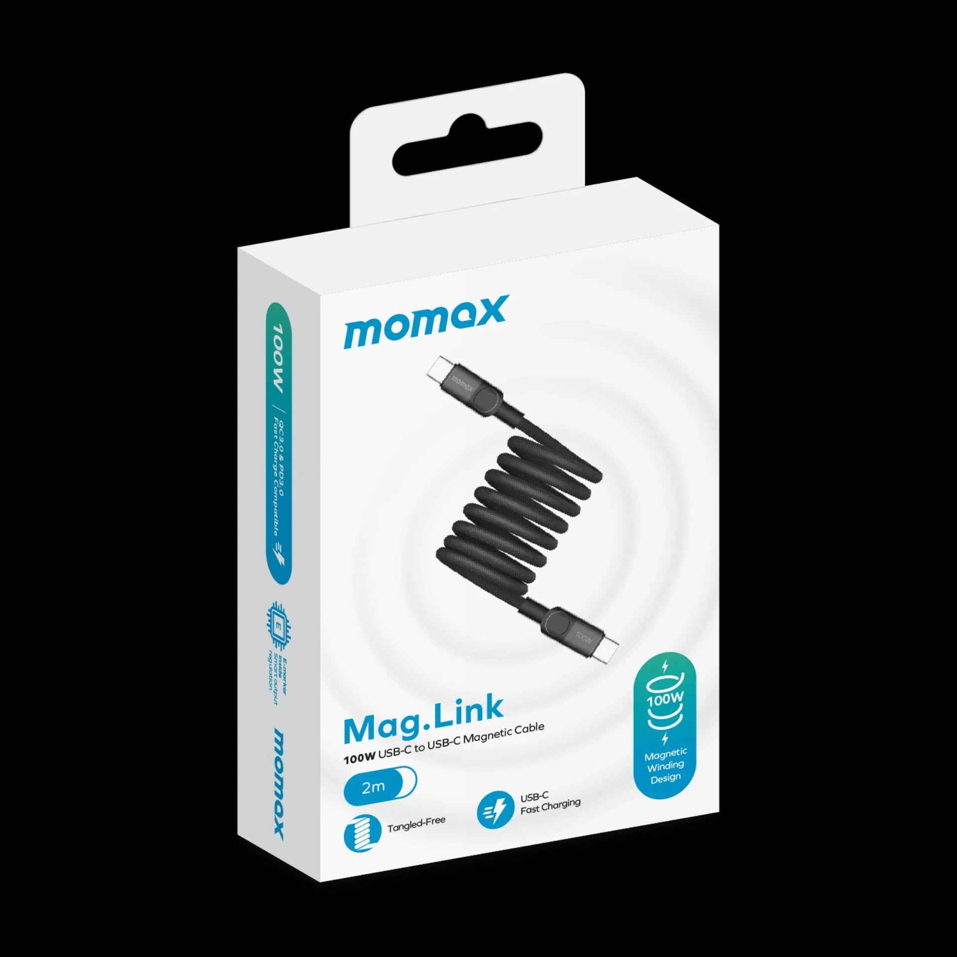- Momax Mag.Link 100W Magnetic USB‑C to USB‑C Cable, 2 m - كيبل موماكس ماج لنك المغناطيسي, USB-C الى USB-C, بقوة 100 واط, طول 2م