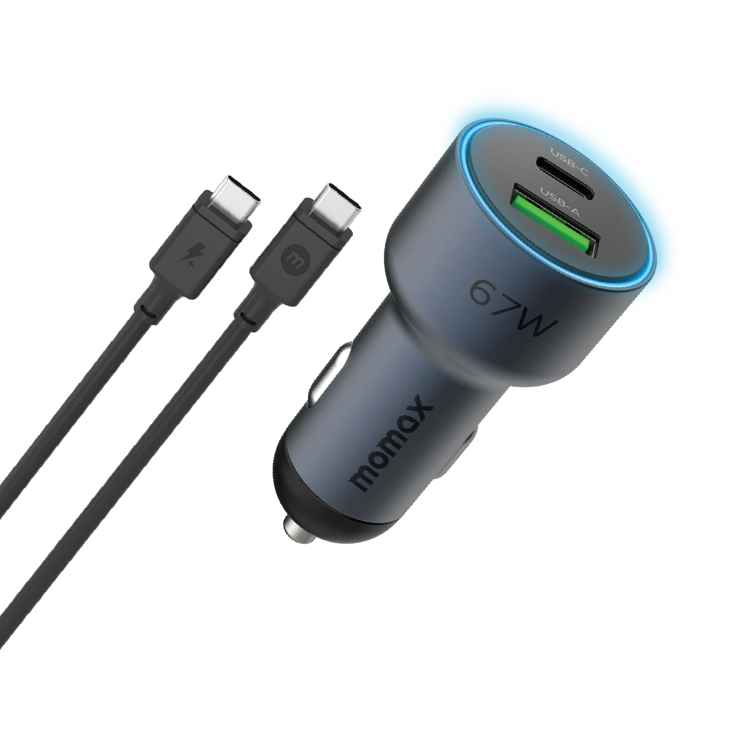 - Momax MoVe 67W Dual-Port Car Charger with USB-C to USB-C Cable - شاحن سيارة موماكس موف بقوة 67 واط بمنفذين وكيبل USB-C إلى USB-C