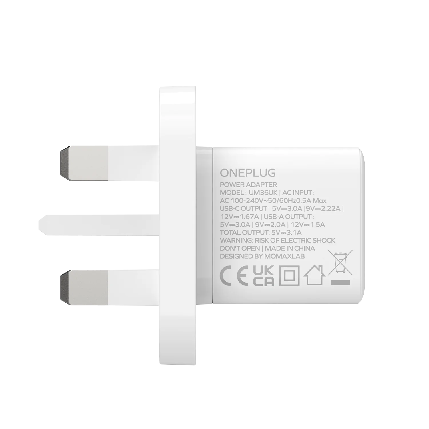 يأتي بمنفذين (USB-C وUSB-A) لتوفير مرونة تامة في شحن مختلف الأجهزة الذكية، ويتميز بمقبس UK رسمي ليتوافق مع المقابس البريطانية.