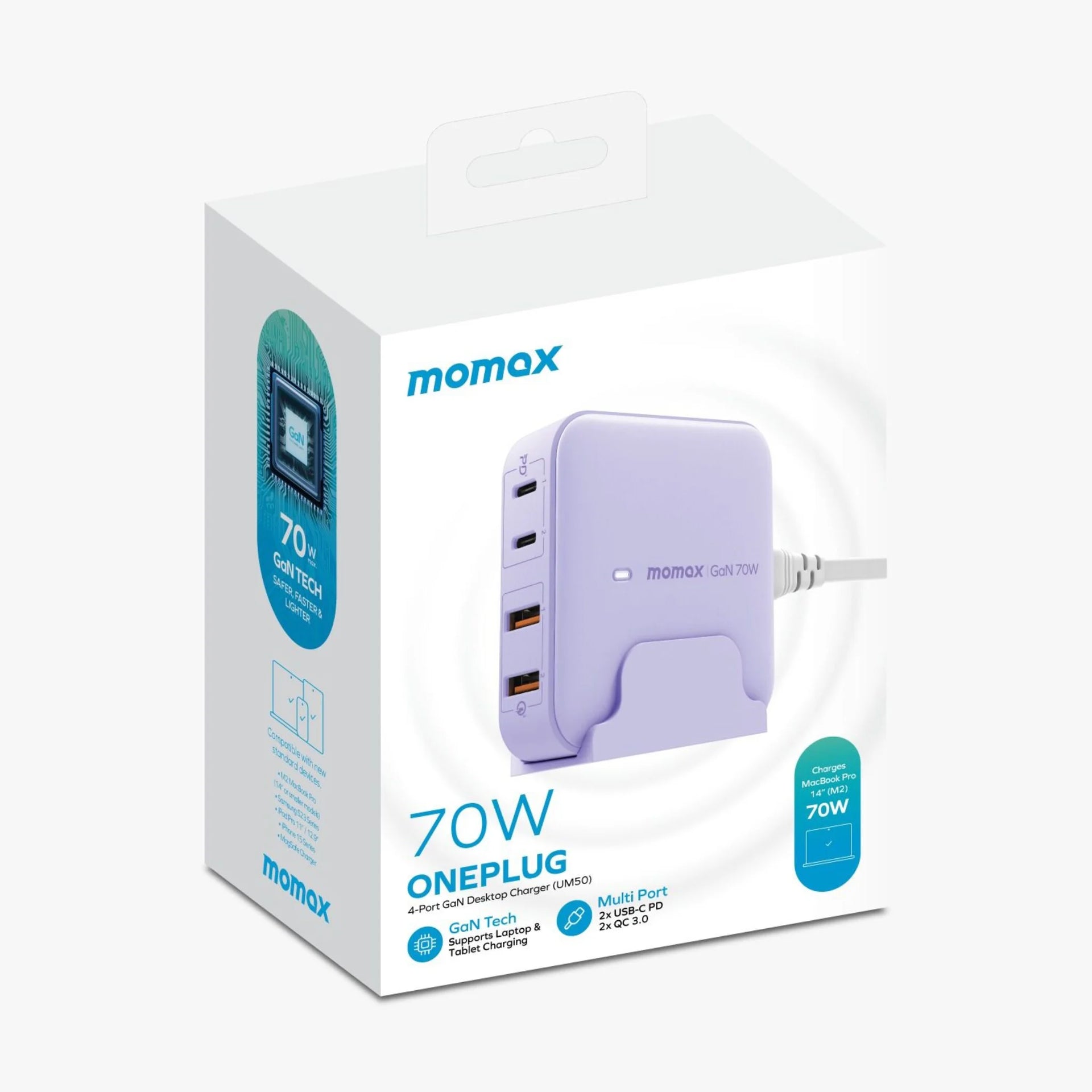 - Momax One Plug 70W e-Port Desktop Charger | Multi-Port Fast GaN Charging Hub - شاحن مكتبي موماكس وان بلاج بقدرة 70 واط, شاحن سريع متعدد المنافذ