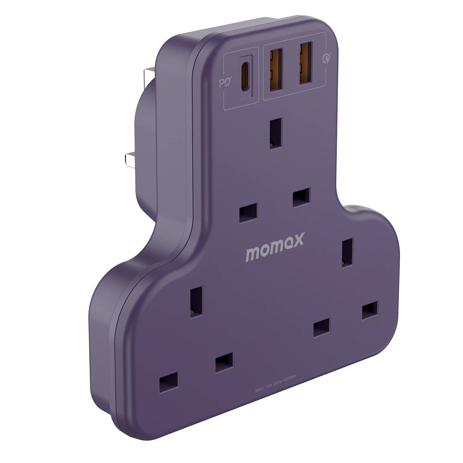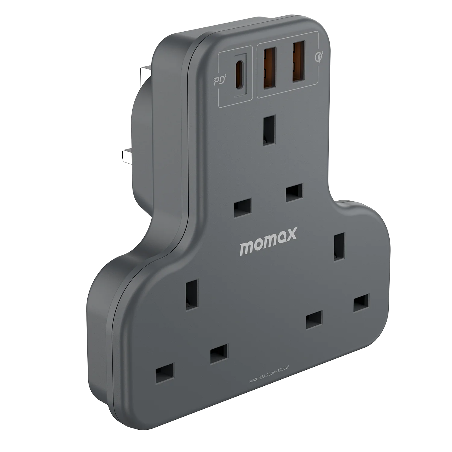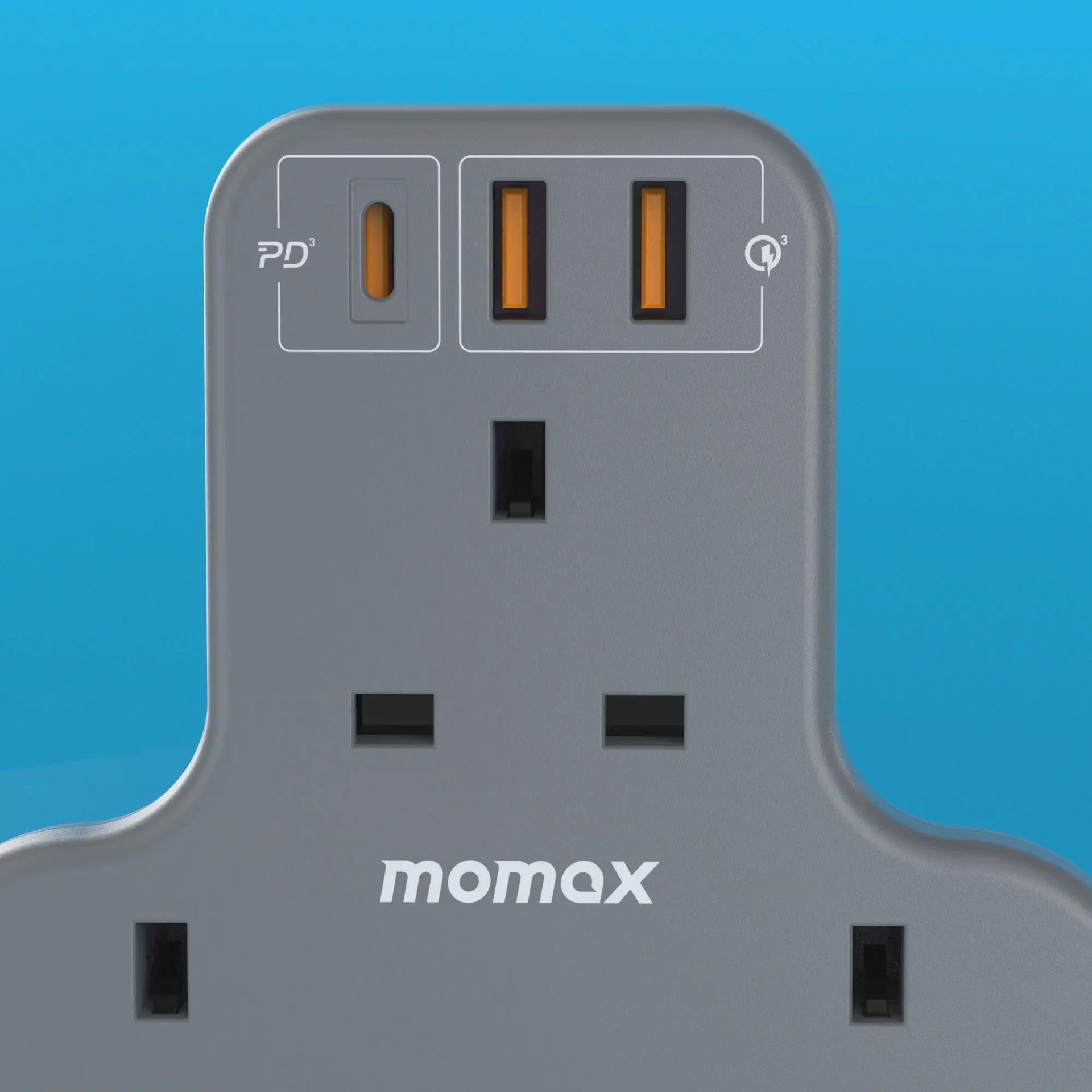 - Momax ONEPLUG T-Shaped 3-Outlet Extension Socket with USB Ports - مشترك موماكس وان بلاج على شكل T بـ3 منافذ طاقة وUSB