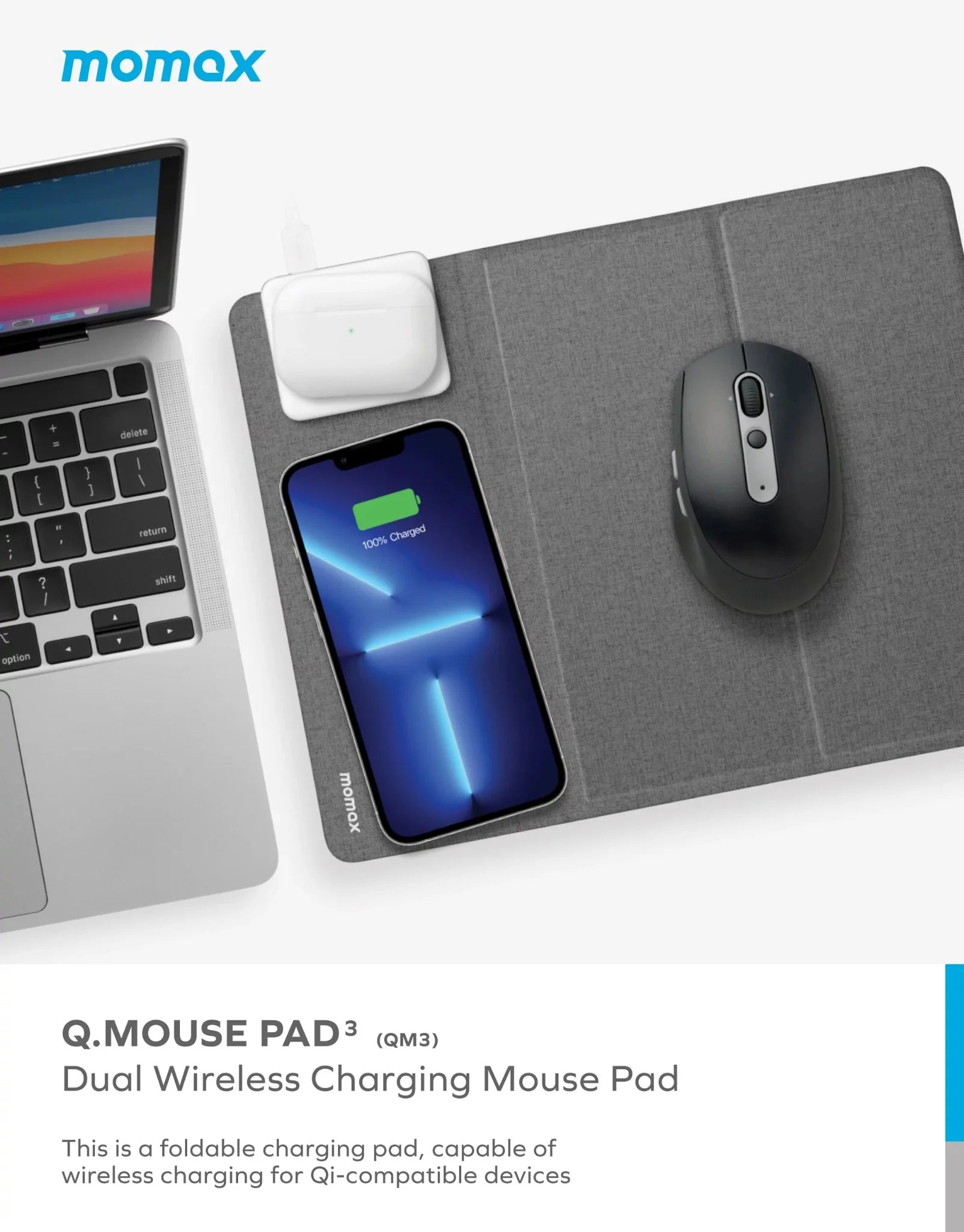 - Momax Q.Mouse Pad 3, 15W Fast Charging - لوحة ماوس موماكس كيوماوس باد 3, شحن لاسلكي مزدوج 15 واط