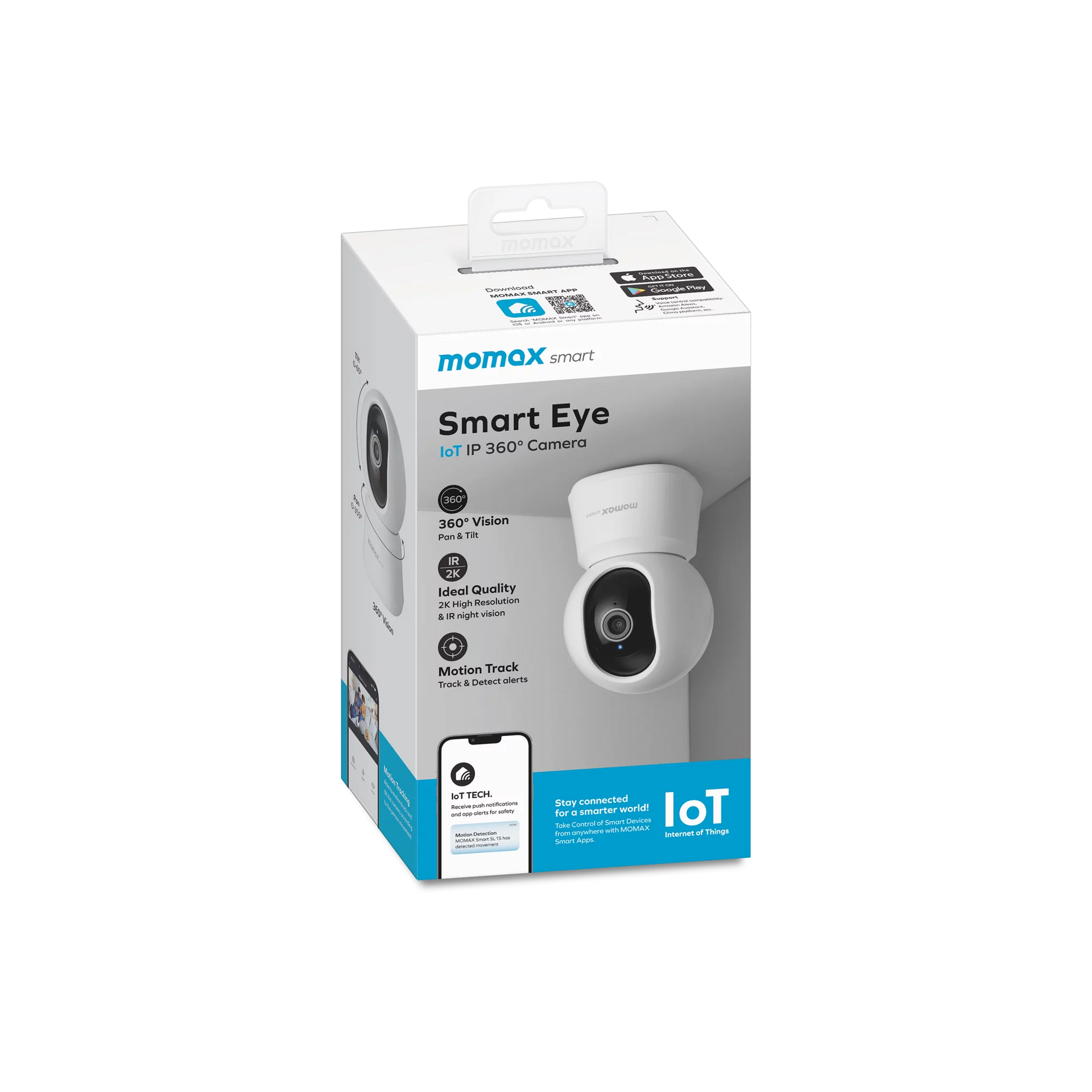 راقب منزلك أو مكتبك بكل ثقة مع كاميرا Momax Smart Eye الذكية، المصممة بأحدث تقنيات إنترنت الأشياء (IoT) ودوران 360 درجة لتغطية شاملة بدون نقاط عمياء.