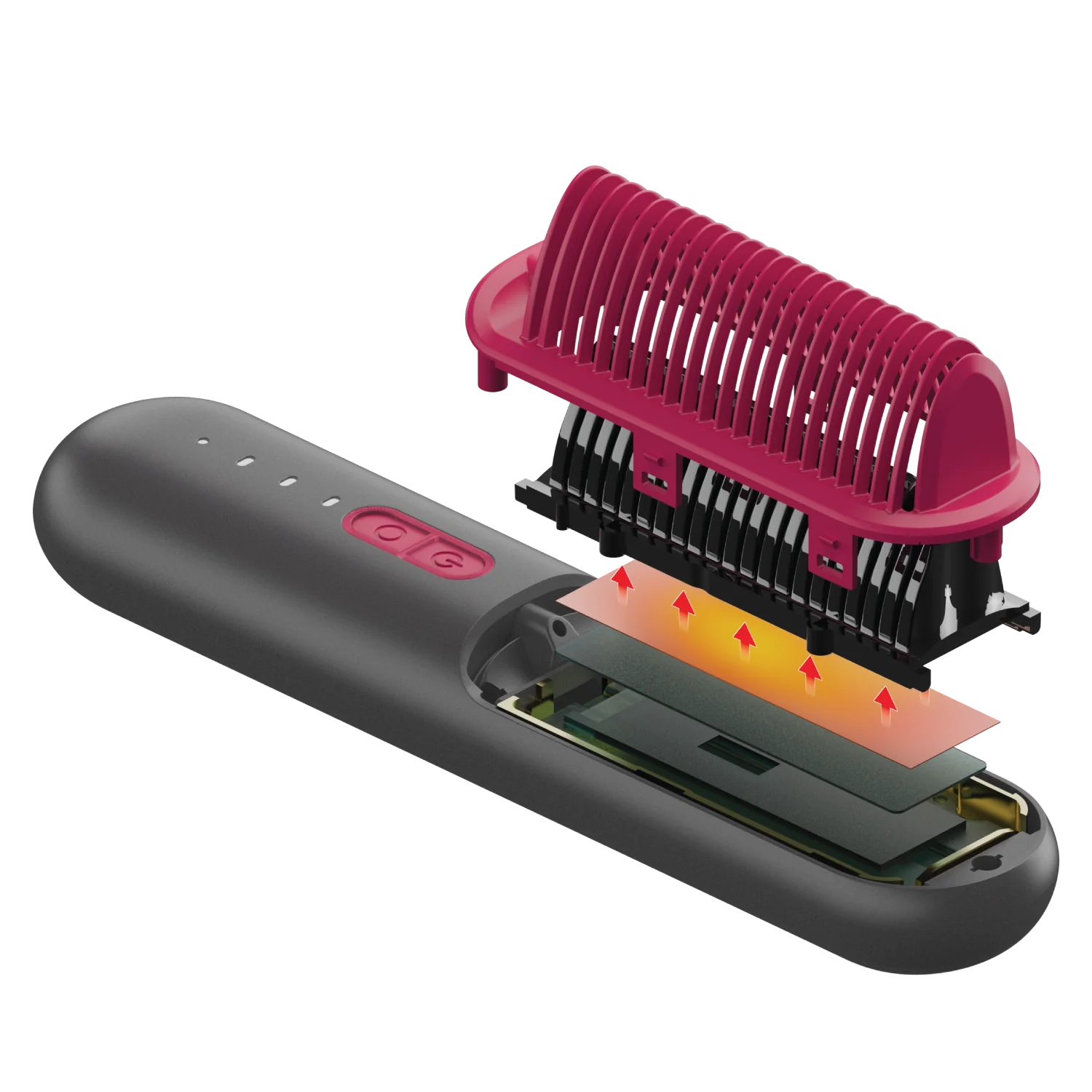 تتميز هذه الفرشاة بتقنية التسخين السريع باستخدام فيلم تسخين كهربائي PI، مما يضمن توزيع الحرارة بشكل متساوٍ وسريع، مع تقليل الضرر الناتج عن الحرارة العالية.
