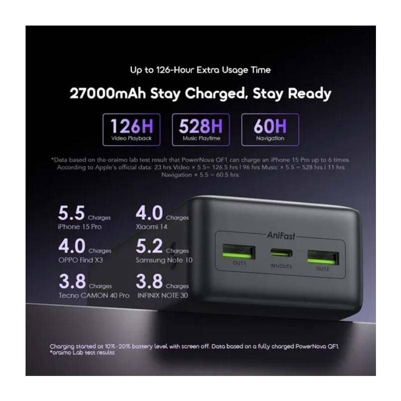باور بانك أورايمو بايسي يوفر طاقة عالية وسريعة لأجهزتك مع تصميم مدمج وسهل الحمل.