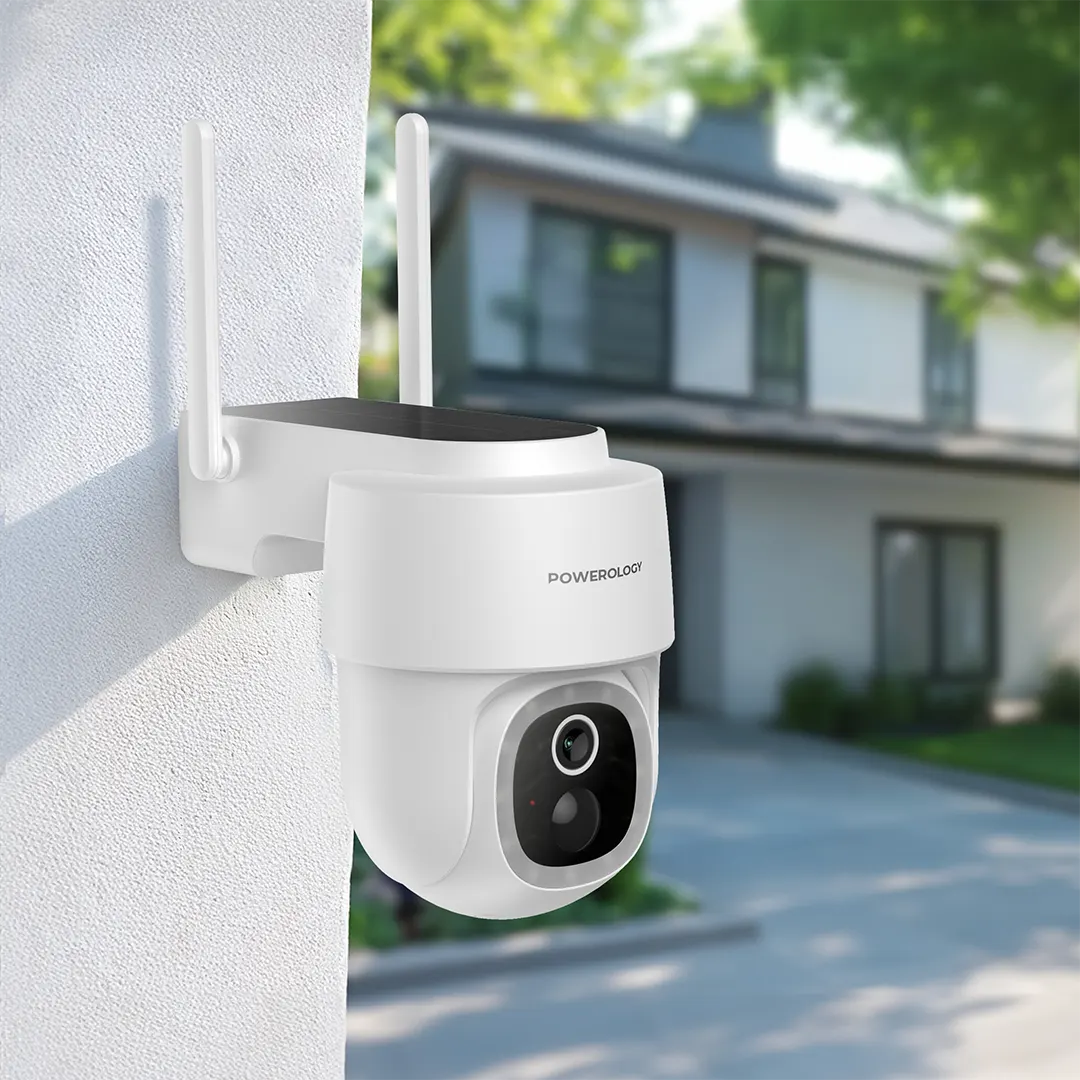- باورولوجي كاميرا خارجية ذكية مقاومة للماء مع لوح طاقة شمسية 5 واط, ببطارية سعة 5200 مللي امبير | Powerology Outdoor Smart Waterproof 5W Solar Pan/Tilt Camera with 5200mAh Battery.