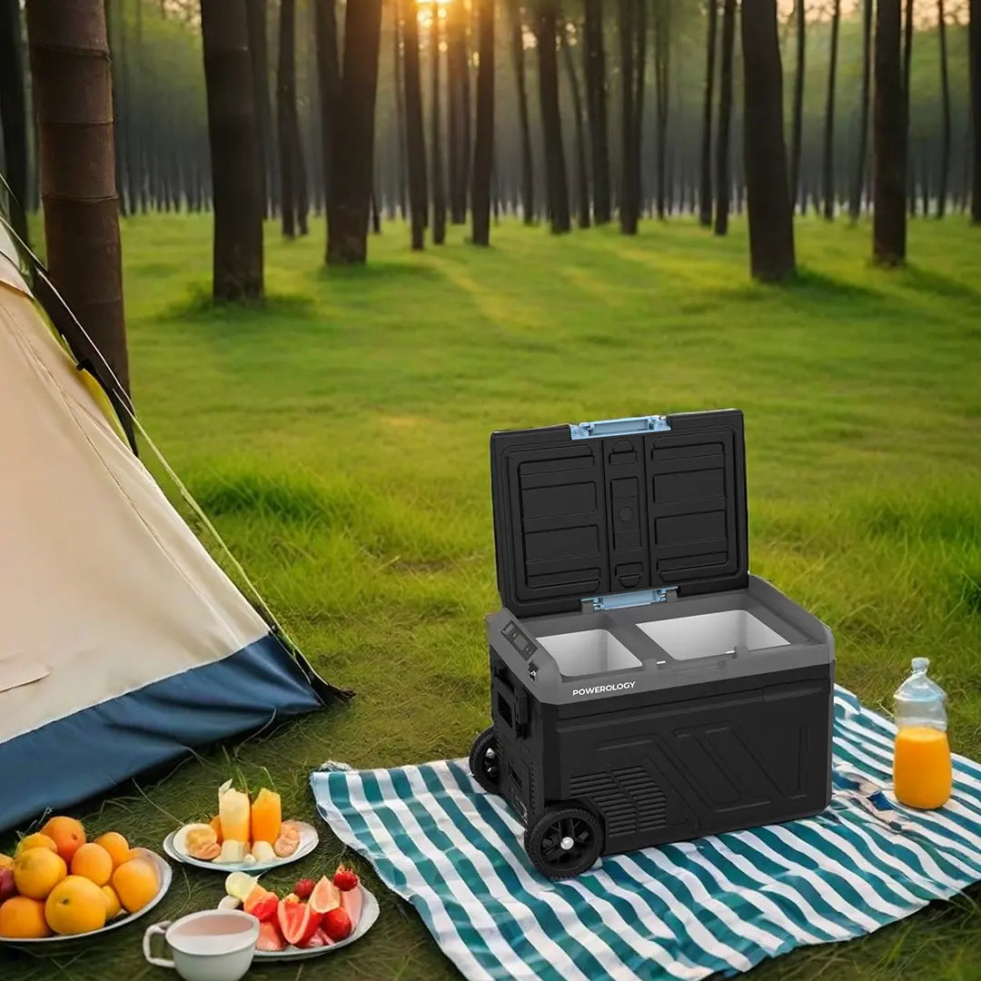 حافظ على طعامك ومشروباتك باردة أو مجمدة أينما كنت مع الثلاجة المحمولة الذكية من باورولوجي بسعة 40 لتر. بفضل التصميم ثنائي الحجرات، يمكنك تخزين الأطعمة المجمدة والمبردة في نفس الوقت مع نطاق تبريد واسع من -20°C إلى +20°C.