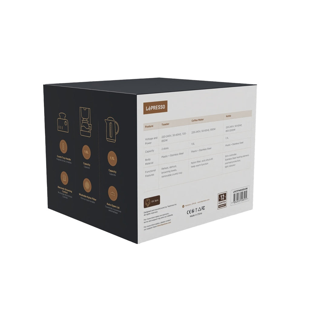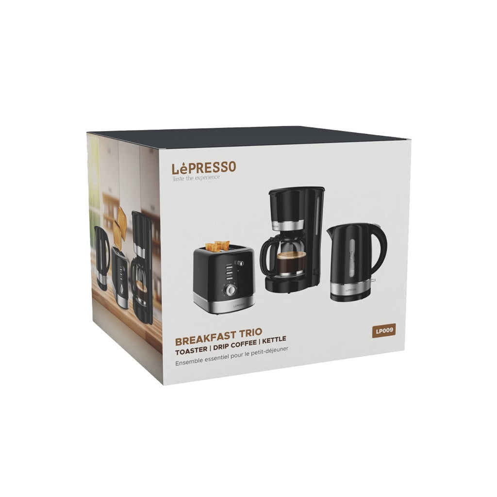 - طقم الافطار من ليبريسو المتكون من محمصة شريحتين, غلاية سعة 1.7 لتر وصانعة قهوة بالتقطير - اسود | LePresso Breakfast Set 2 Slice Toaster, 1.7L Kettle and Drip Coffee Maker - Black