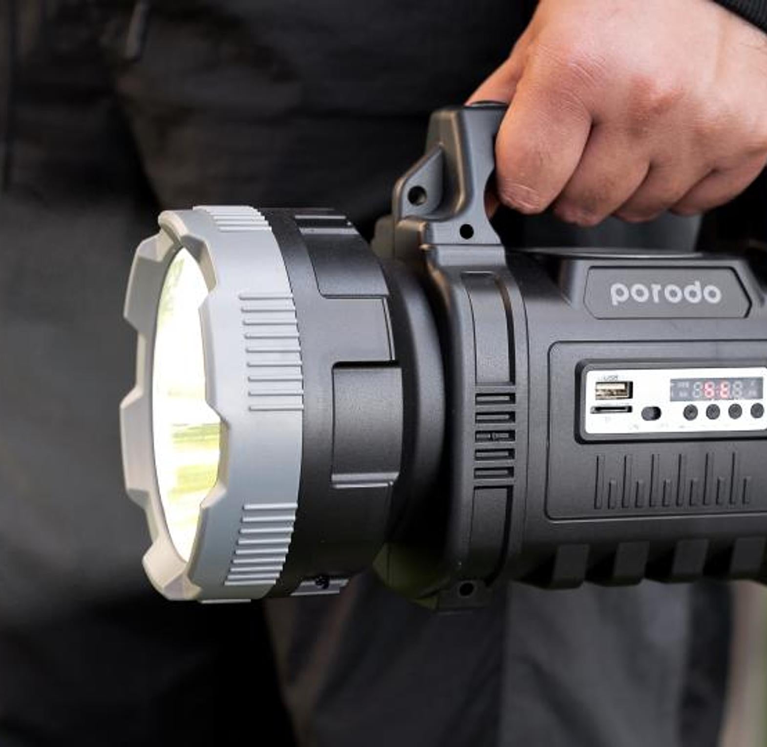 - كشاف بورودو لايف ستايل الخارجي 3 في 1 مع راديو FM ومكبر صوت بلوتوث بقدرة 10 واط - اسود/رمادي | Porodo LifeStyle Outdoor 10W 3 in 1 Flashlight with FM Radio and Bluetooth Speaker - Black/Grey