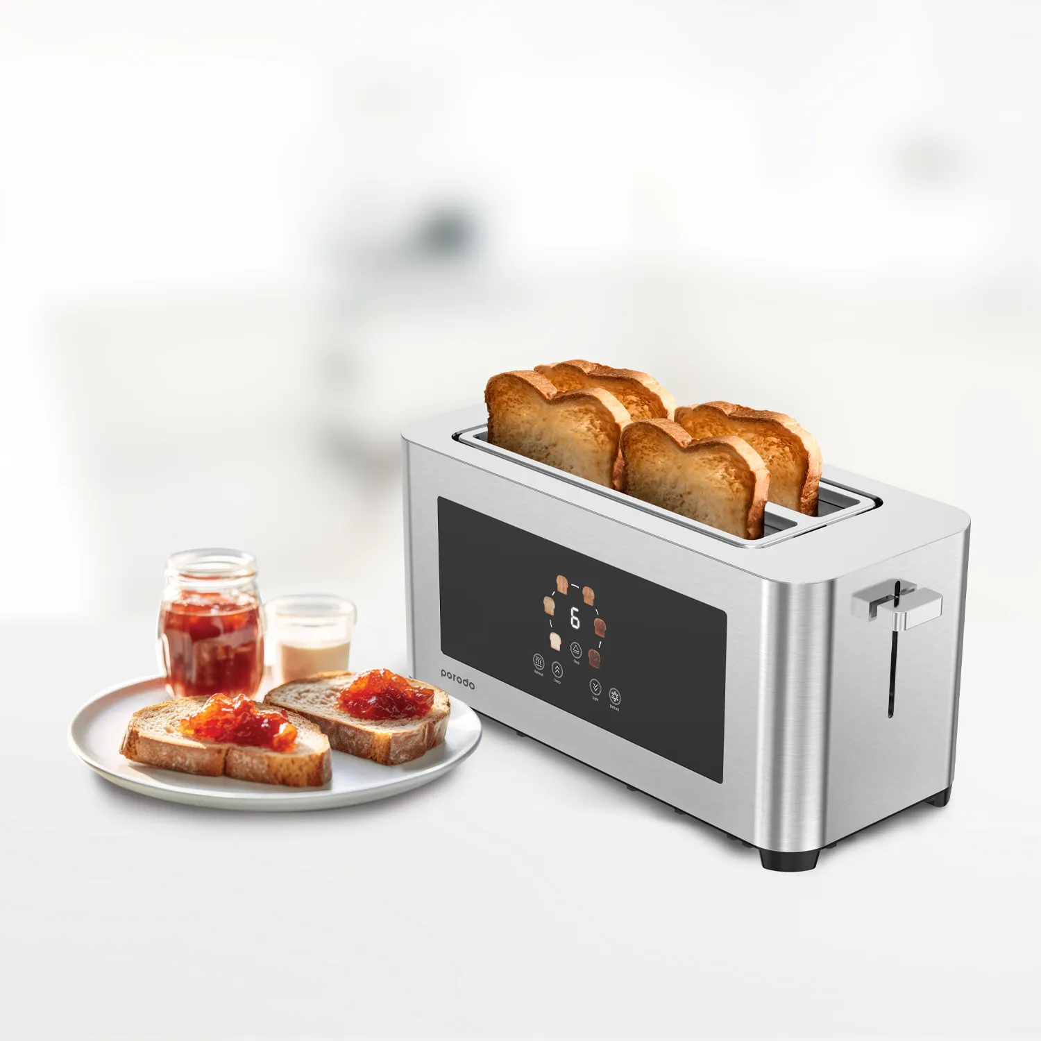 - محمصة رقمية 4 شرائح بوب اب من بورودو لايف ستايل, بقدرة 850 واط - فضي | Porodo Lifestyle 4-Slice Digital Pop up Toaster 850W - Silver