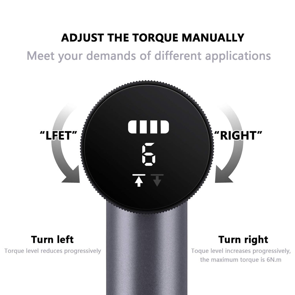 - يعمل الجهاز ببطارية مدمجة بسعة 2200mAh تدوم طويلًا، مع شحن عبر منفذ Type-C خلال 2 إلى 3 ساعات فقط. يدعم الجهاز 6 مستويات للسرعة تصل إلى 220 دورة في الدقيقة، ويمكن التحكم بها عن طريق حلقة دائرية محيطة بـ شاشة رقمية تعرض مستوى السرعة وحالة البطارية (4 مراحل).