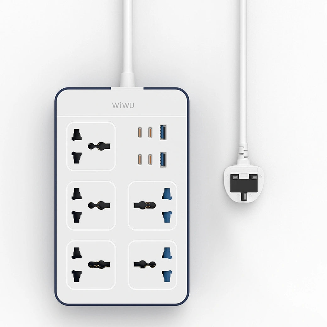 اشحن جميع أجهزتك دفعة واحدة مع شريط الطاقة WiWU PS524 GaN 11-in-1، المصمم لتوفير الطاقة الذكية والآمنة. يضم 4 منافذ Type-C (PD 20W)، 2 منافذ USB-A (2.4A)، و 5 منافذ AC، ما يجعله الحل المثالي لتجميع شحن كل أجهزتك المكتبية أو المنزلية في مكان واحد. مصنوع من مواد ABS+PC عالية الجودة، مع حماية متكاملة ضد الحمل الزائد، القصر الكهربائي، والتيار الزائد، مما يجعله الخيار الأمثل لمكاتب العمل أو المنازل التي تتطلب طاقة متعددة بأمان وكفاءة.