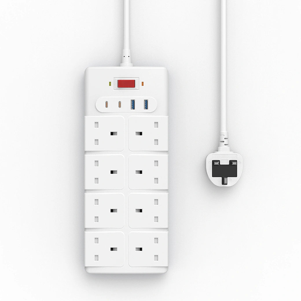 - شريط طاقة مكتبي متعدد الوظائف 12 منفذ (8 AC + 2 USB-C + 2 USB-A).