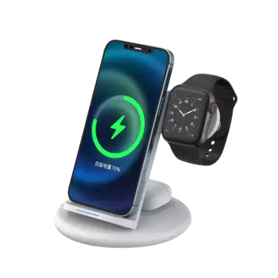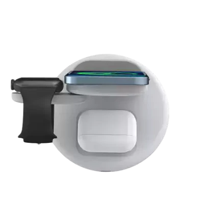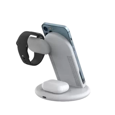 شاحن سطح المكتب اللاسلكي WiWU Power Air 3 في 1 لابد أن يكون لدى كل من يمتلك أجهزة متعددة. هذه المحطة الشحن الأنيقة والفعالة ليست فقط تشحن هاتفك، بل تشحن أيضًا سماعات الأذن الخاصة بك، مما يجعلها أقصى درجات الراحة لأولئك الذين يتنقلون باستمرار. مع قدرات الشحن السريع وحامل الهاتف العملي، يمكنك بسهولة الحفاظ على جميع أجهزتك مشحونة ومنظمة.