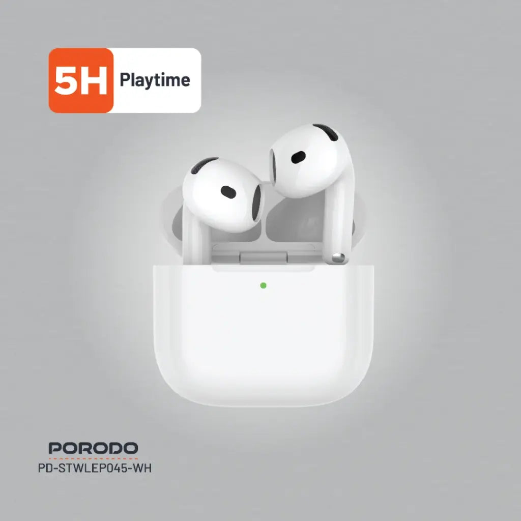 - ارتقِ بتجربة الاستماع الخاصة بك مع سماعات بورودو ساوندتك الجيل الرابع التي تجمع بين الأداء العالي والتقنيات الحديثة. بفضل مشغلات الصوت الكبيرة مقاس 13 ملم وتقنية البلوتوث V5.3، ستستمتع بصوت غامر ونقي يصل مداه حتى 25 مترًا دون انقطاع. تمنحك البطارية بسعة 300mAh حتى 5 ساعات من التشغيل المتواصل، مع إمكانية إعادة الشحن عبر منفذ Type-C خلال ساعتين فقط.