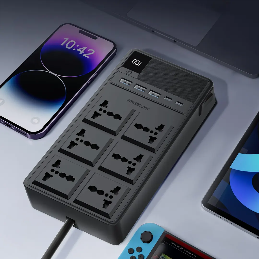ارتقِ بتجربة الشحن والطاقة في منزلك أو مكتبك مع مشترك باورولوجي 2500W المزوّد بـ 6 منافذ AC عالمية وكابلات مدمجة قابلة للسحب، ليمنحك أعلى مستوى من المرونة وسهولة الاستخدام.
