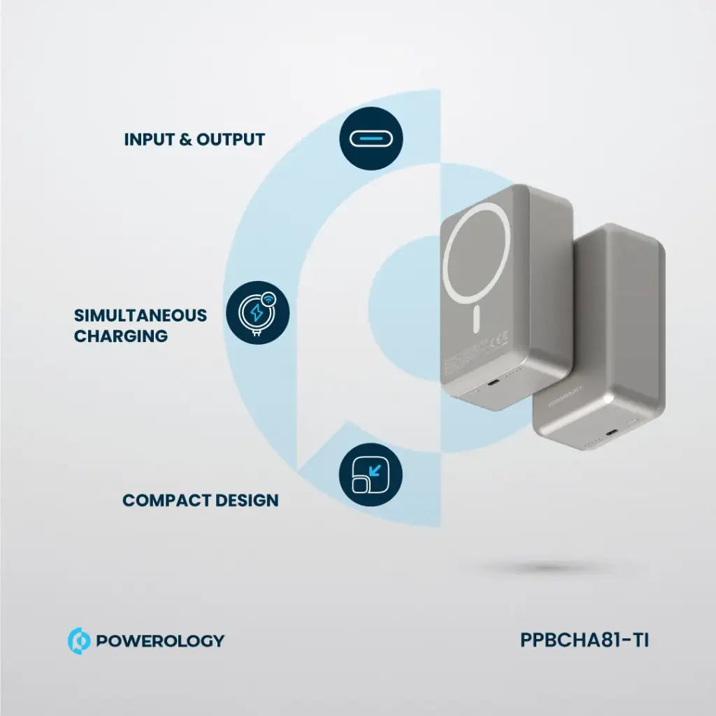 Bi Power Bank 30000mAh MagSafe ya Powerology, ku ji alumînyûma kalîteya bilind hatiye çêkirin û hêz, domdarî û xuyangek luks bi hev re dike yek, di rê de ji hêzek pêbawer kêfê bistînin.