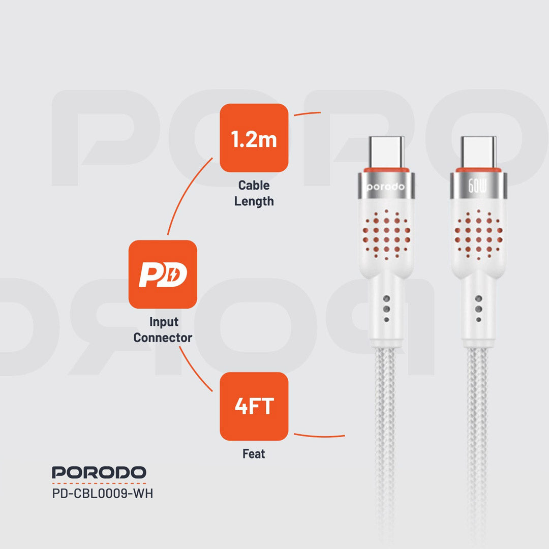 Kabloya USB-C ber bi USB-C ya ji Aluminiumê ya Porodo, 1.2m, Şarjkirina Bilez a 60W | Kabloya Aluminiumê ya Porodo. Kabloya ji Aluminiumê ya ji Aluminiumê ya bi Alloy ve hatî çêkirin, 1.2m