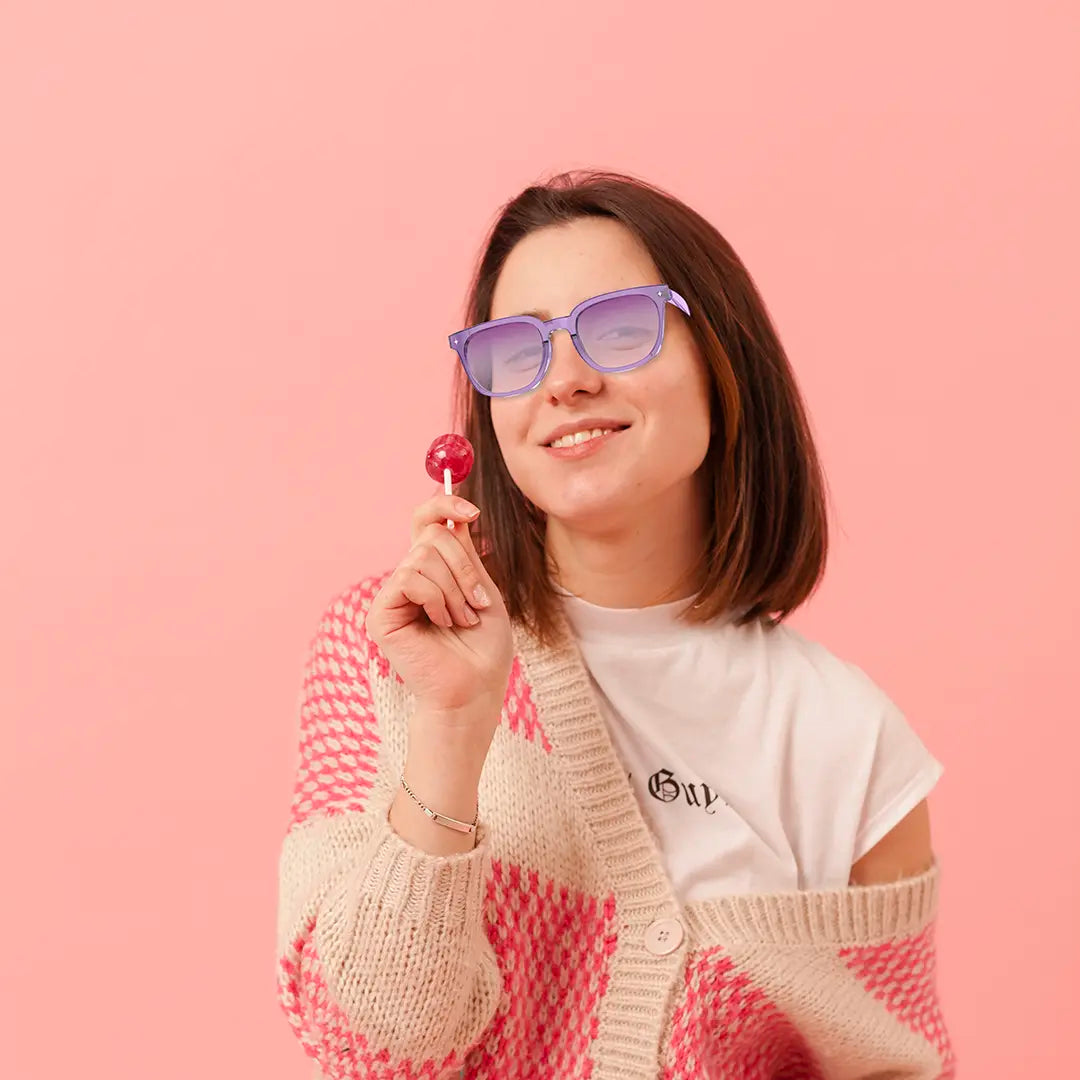 Çavikên Rojê yên Jîr ên Powerology Lifestyle bi Bluetooth û Kontrola Destikê, Lensên Mor ên Gradient - Mor | Çavikên Rojê yên Powerology Lifestyle BT bi Kontrola Destikê + Lensên Mor ên Gradient - Mor
