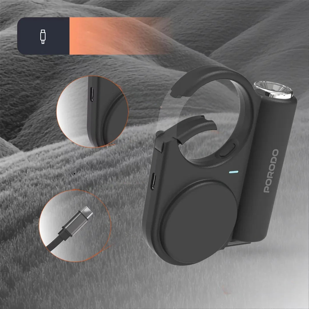 - احصل على الطاقة أينما كنت مع بورودو باور بنك خارجي 5000mAh المصمم لعشاق المغامرات الخارجية. يتميز بكابل تايب-سي مدمج قابل للسحب بطول 70 سم لتسهيل الشحن دون الحاجة لحمل أسلاك إضافية.