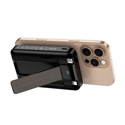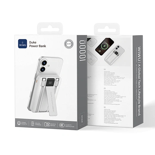 باور بانك ويوو بسعة 10000 مللي امبير مع شحن سريع 22.5 واط وكيبل لايتننغ وتايب سي مدمجين مع مسند | WiWU Duke Wi-P061 10000mAh Power Bank, 22.5W Fast Charging with Built-in Type-C & Lightning Cables and Stand.