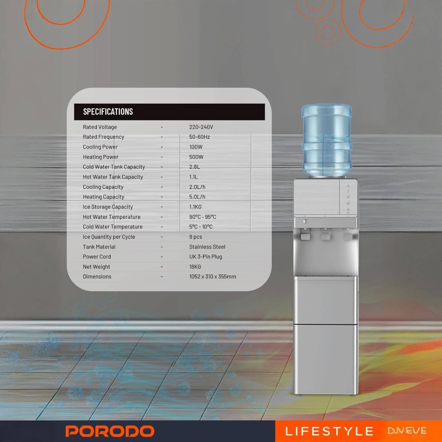 - اجمع بين الراحة والكفاءة مع مبرد المياه وصانعة الثلج من بورودو. بفضل تصميمه العملي من نوع Top Load، يسهل تعبئة المياه متى احتجت. مصنوع بخزانات من الفولاذ المقاوم للصدأ (Stainless Steel) لضمان المتانة والنظافة، ويوفر مياه باردة بين 5°C – 10°C ومياه ساخنة بدرجة حرارة 90°C – 95°C في أي وقت.