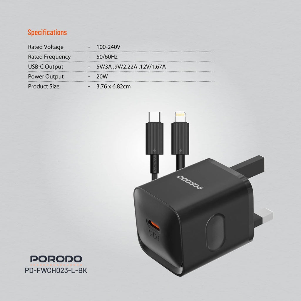 - شاحن الحائط بورودو USB-C باور ديليفري مع كابل لايتنينج هو الحل المثالي للشحن السريع والآمن لأجهزتك الحديثة. يتميز بتصميم أنيق ومدمج، مما يجعله مناسبًا للاستخدام في المنزل أو أثناء السفر. بقدرة 20 واط ودعم PD، يمكنك شحن أجهزتك بسرعة وكفاءة، بينما توفر ميزة الحماية من الحرارة الزائدة أمانًا إضافيًا أثناء الشحن. يأتي مع كابل تايب-سي إلى لايتنينج ليمنحك تجربة شحن متكاملة وموثوقة.