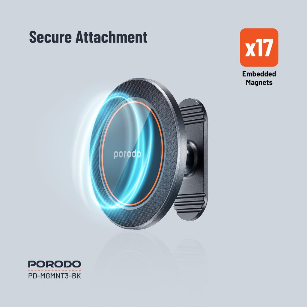 يحتوي الحامل على 17 مغناطيس N54 قوي لتوفير أقصى درجات التثبيت، مع قدرة تحمل تصل إلى 1800 جرام مما يجعله مناسبًا للهواتف الكبيرة مع الأغطية الواقية. بفضل ميزة التشغيل بيد واحدة، يمكنك بسهولة وضع أو إزالة الهاتف، في حين تسمح لك ميزة الدوران 360° بتعديل زاوية العرض المثالية. - كما أن التصميم الأنيق مع ملمس الكربون الفاخر يضيف لمسة جمالية عصرية لأي مساحة، مع مقاومة عالية للحرارة لضمان أداء طويل الأمد.
