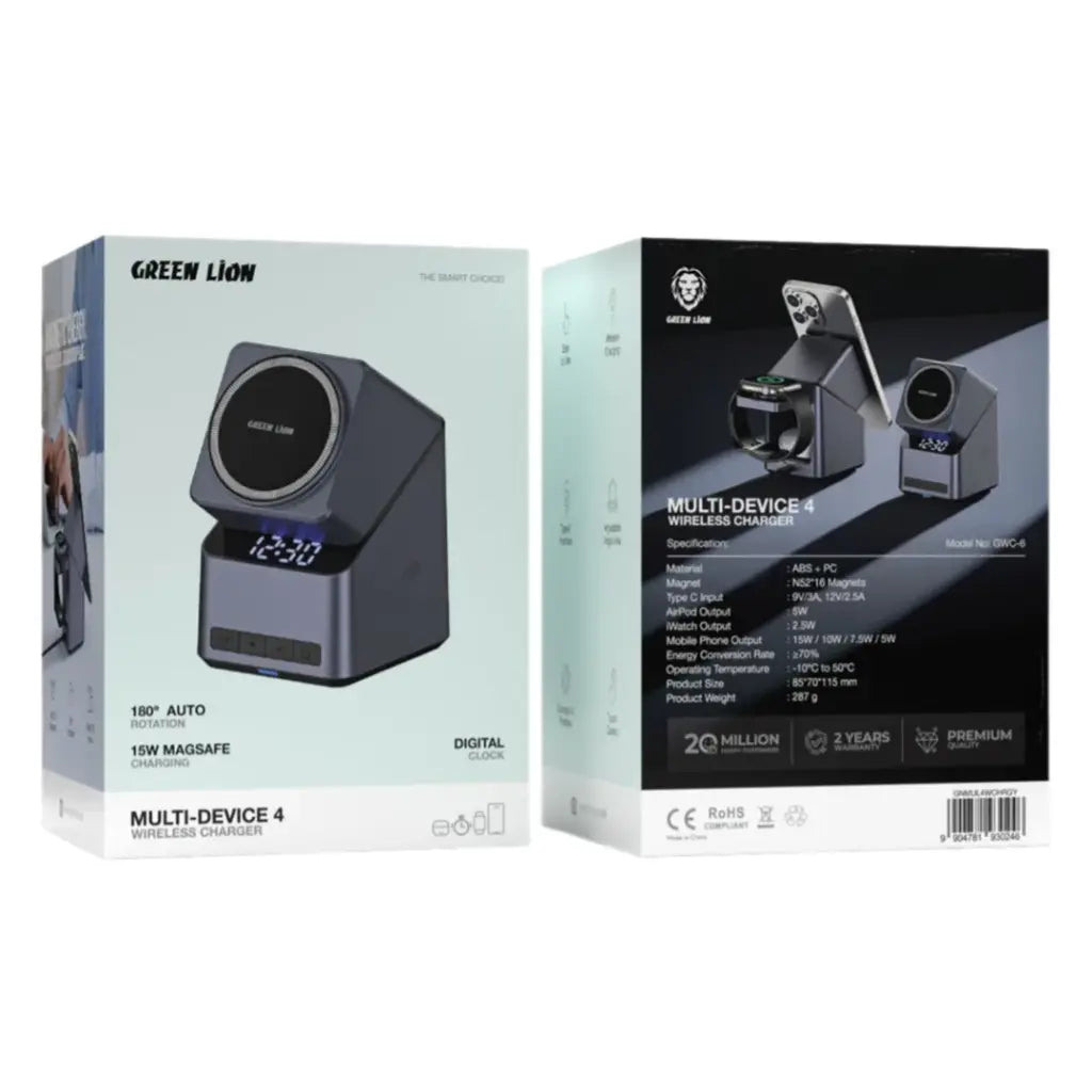 شاحن جرين لايون متعدد الاجهزة 4 اللاسلكي - رمادي | Green Lion Multi Device 4 Wireless Charger - Gray