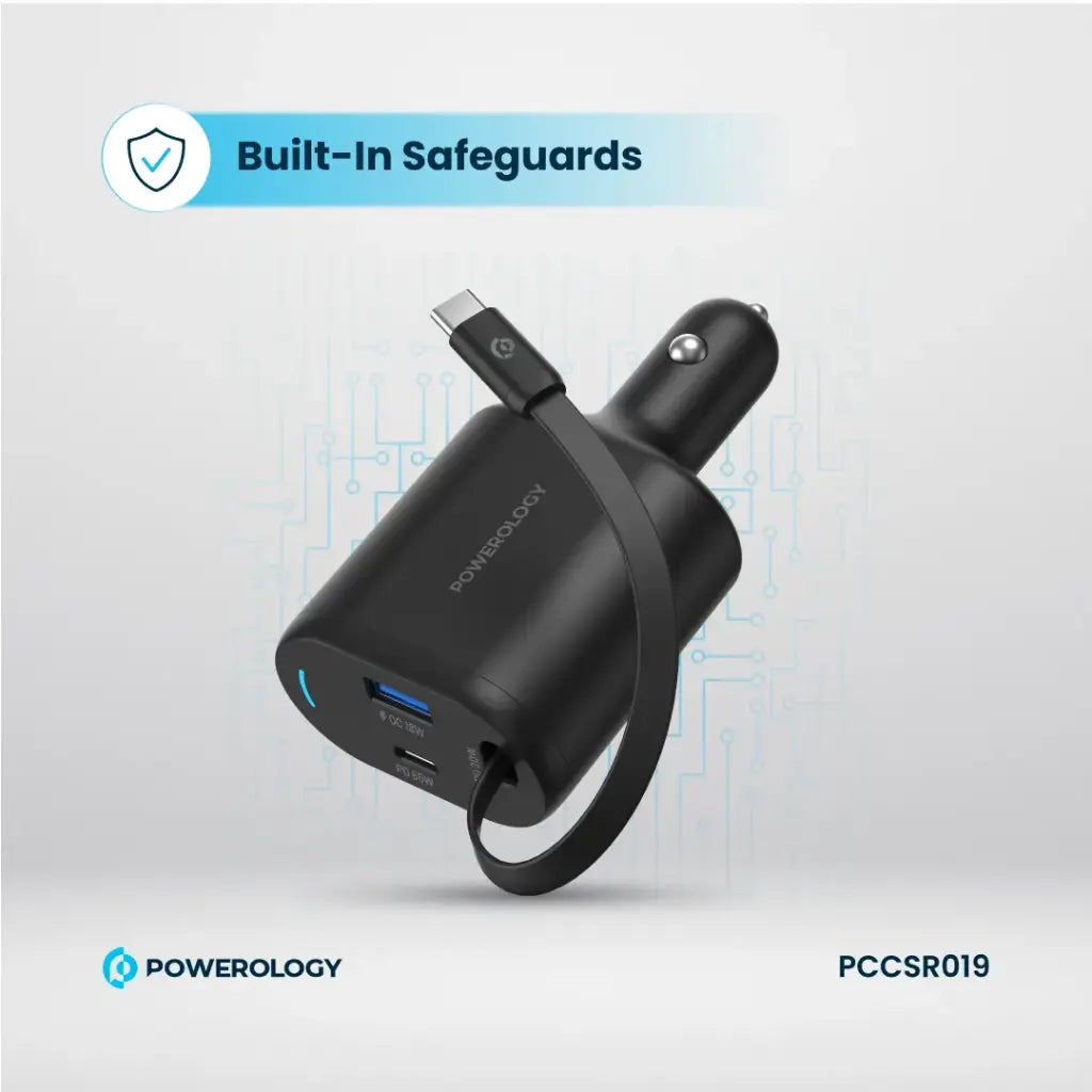 - شاحن سيارة باورولوجي بمنفذين وكابل Type-C مدمج ×1
