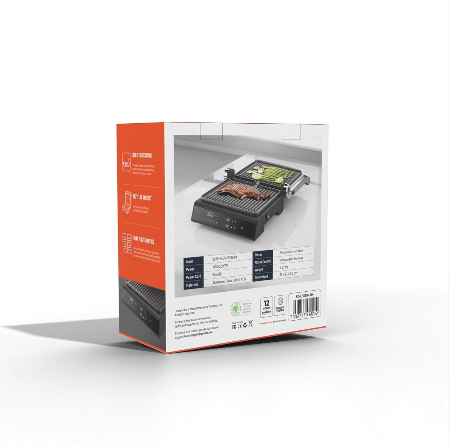 شواية بورودو لايف ستايل الرقمية بسطح زجاجي مع صفيحة قابلة للازالة بقدرة 2000 واط - اسود | Porodo LifeStyle Glasstop Digital Grill with Removable Grill Plate 2000W - Black
