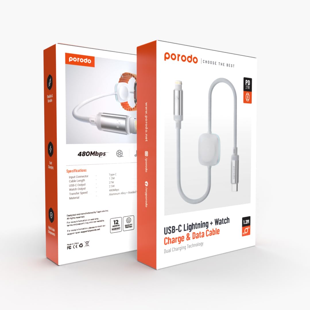 - كابل بورودو 2 في 1 USB-C إلى Lightning مع شاحن ساعة لاسلكي