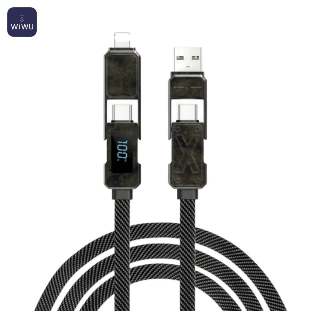 كيبل ويوو 4 في 1, يو اس بي اي - يو اس بي سي الى يو اس بي سي ولايتننغ بقدرة شحن 100 واط وطول 15 سم - رمادي | WiWU X Series Charging Cable A+C to C+L 100W 15cm – Gray