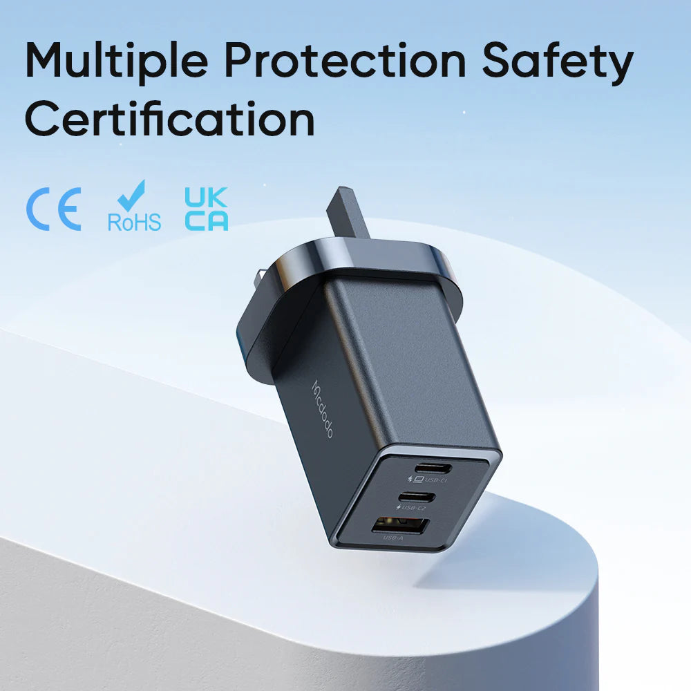 يتميز شاحن Mcdodo 67W 2Port USB-C & 1 Port USB Gan5 Mini Fast Charger Pro الاحترافي بتقنية متطورة وقدرات شحن فعالة. يتضمن كابل Type-C إلى Lightning بطول 1.2 متر، مما يجعله مثاليًا لتعظيم تجربة الشحن الخاصة بك. قم بالترقية إلى هذا الشاحن السريع للحصول على حل شحن أكثر انسيابية وراحة وقوة.