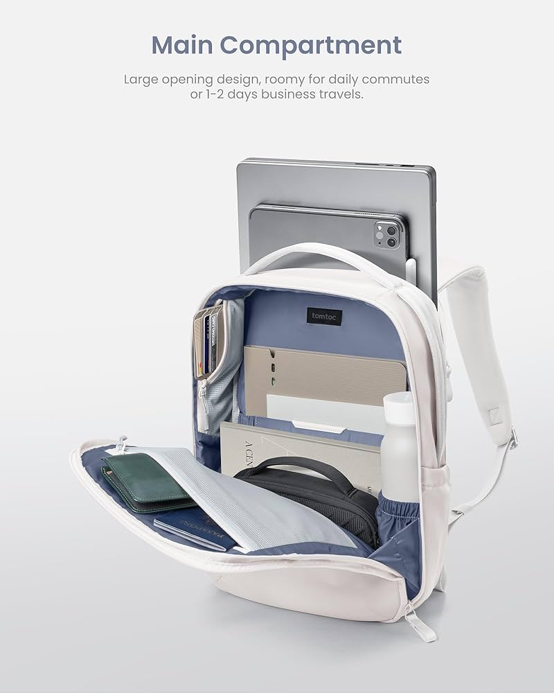 حقيبة الظهر تومتوك فويّاج-T50 بتصميمها الأنيق بزاوية 45 درجة تمنحك أسلوبًا عصريًا واحترافية عالية مع قدرة استيعاب تصل إلى 20 لترًا ومقاس لابتوب حتى 15.6 بوصة. صُممت خصيصًا لتوفير أقصى درجات الحماية لأجهزتك بفضل الوسادة الواقية EVA المدمجة التي تمتص الصدمات وتحمي الجهاز من السقوط غير المقصود. كما يأتي التابلت بحماية إضافية داخل منطقة تعليق فريدة تبقيه مرتفعًا وآمنًا.